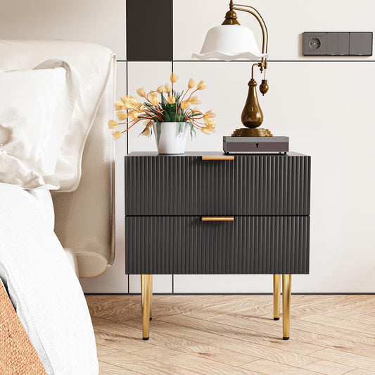 Smart FENDEE Modern Nightstands with 2 Wave Fluted Drawer Wood Bedside Table for Bedroom