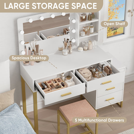 Algherohein Vanity Set with Mirror and Storage Cabinet,Makeup Vanity for Bedroom