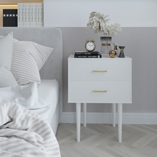 Nightstand with 2 Drawers & Golden Handle,Storage Bedside Table - White
