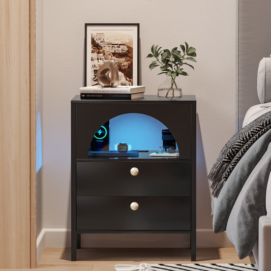 Modern End Tables with USB Ports and Outlets LED Lights Nightstand with Charging Station