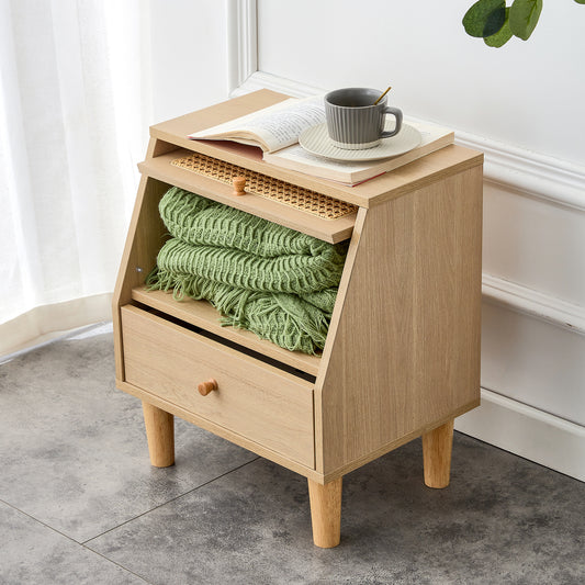 Modern simple storage cabinet MDF Board bedside cabinet rattan bedside cabinet Small household furniture bedside table