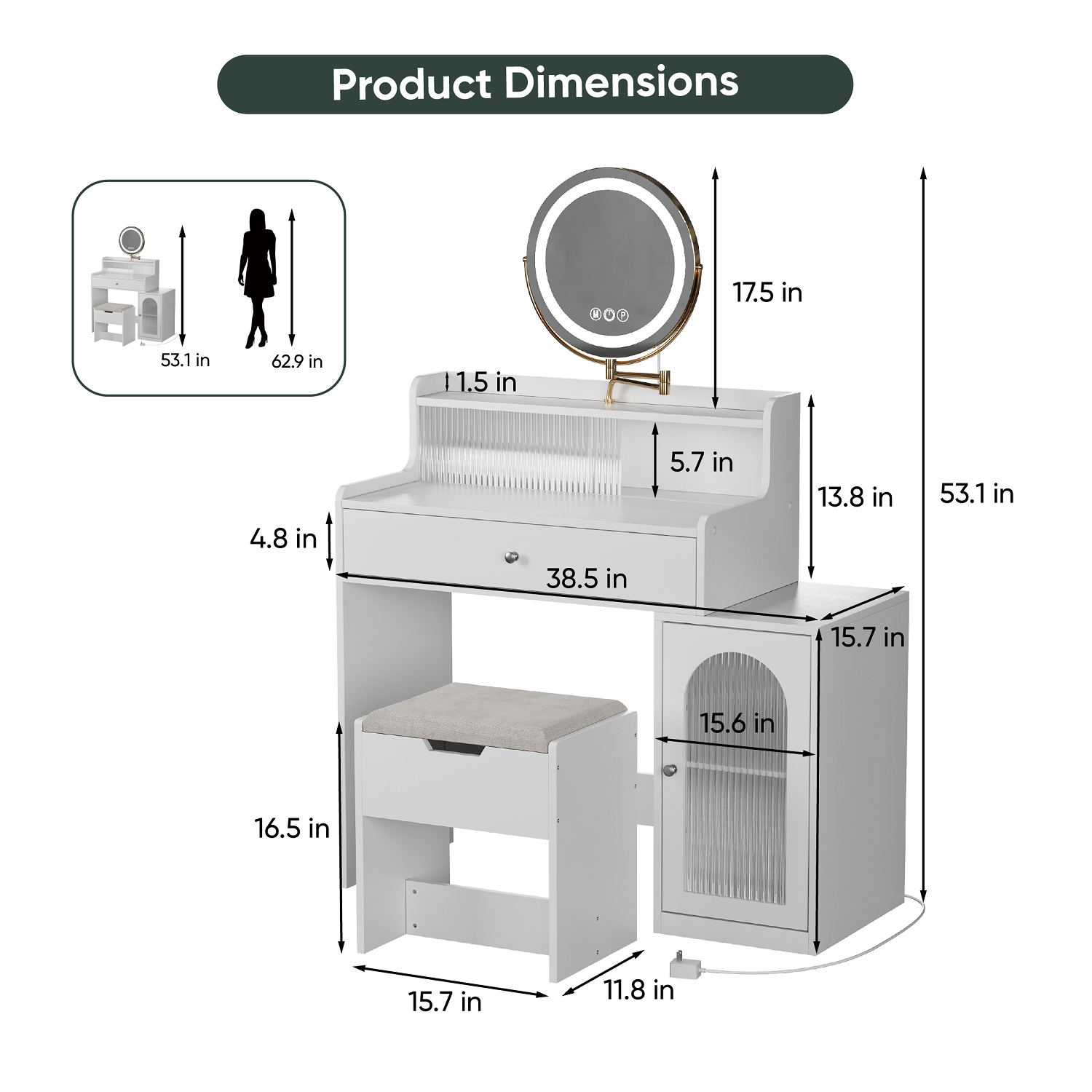 This modern vanity set with mirror and vanity chair combines style, storage, and smart design to elevate your daily routine. With its rotating mirror, adjustable lighting, and ample space, you’ll enjoy a premium beauty experience every day—all in one elegant makeup.