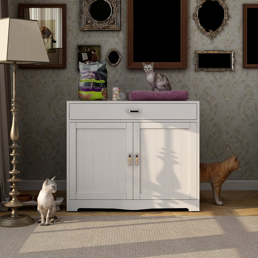 Smart FENDEE Modern Cat Litter Box with Hidden Plug, 2 Doors Wooden Pet House