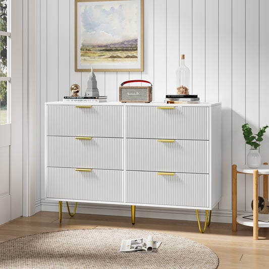 Smart FENDEE Modern Dresser with 6 Drawers Wood Storage Cabinet for Living Room, White, Adult