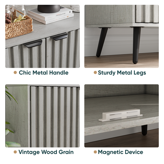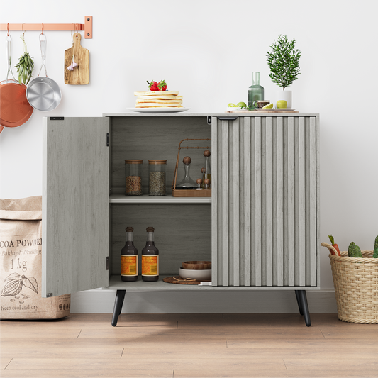 Algherohein Storage Cabinets with Adjustable Shelf and Fluted Doors,Buffet Cabinet with Storage,Gray